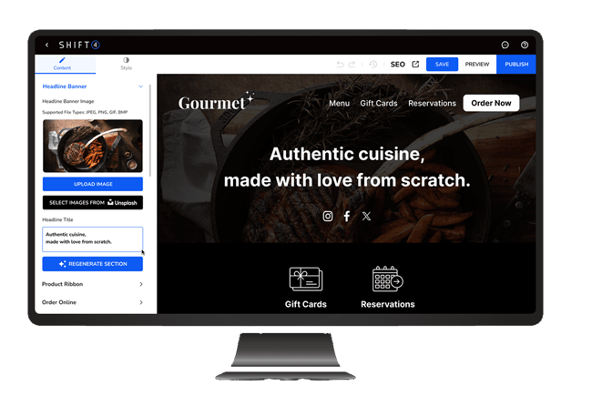 Build a restaurant in minutes to quickly establish your online presence.